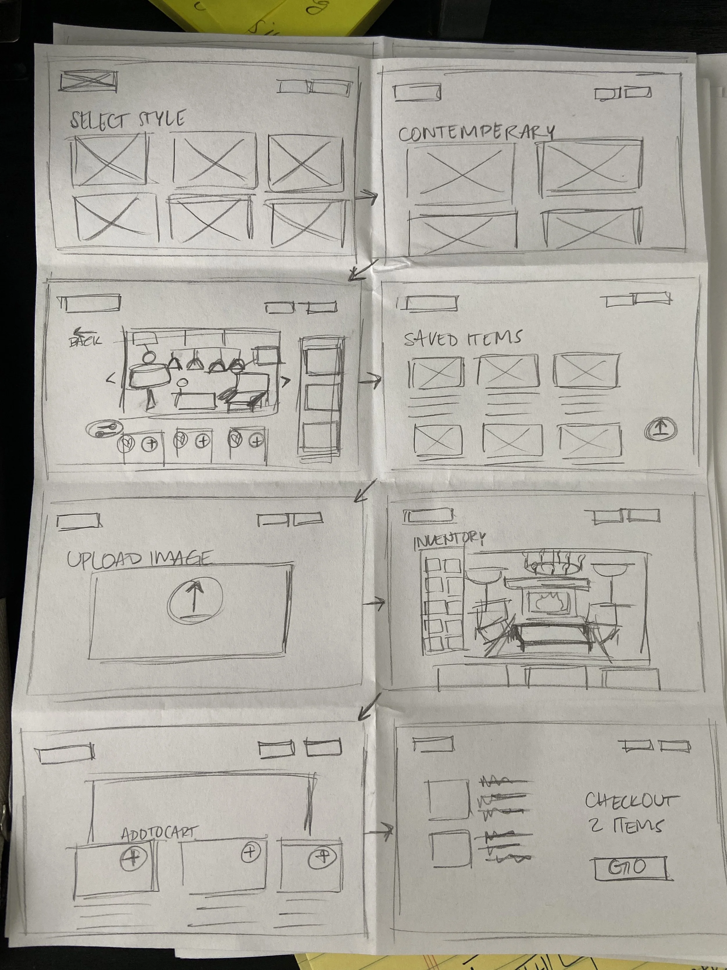These screen ideas represent the 3 step process. Each element of each screen is aimed to make the user feel more confident when shopping for home decor.